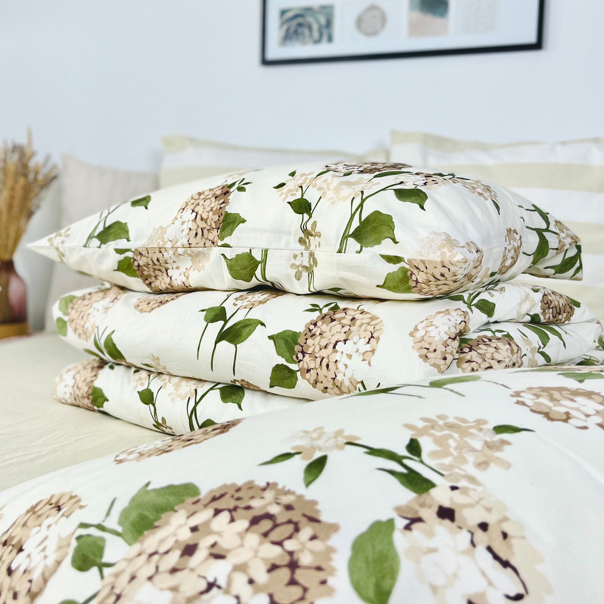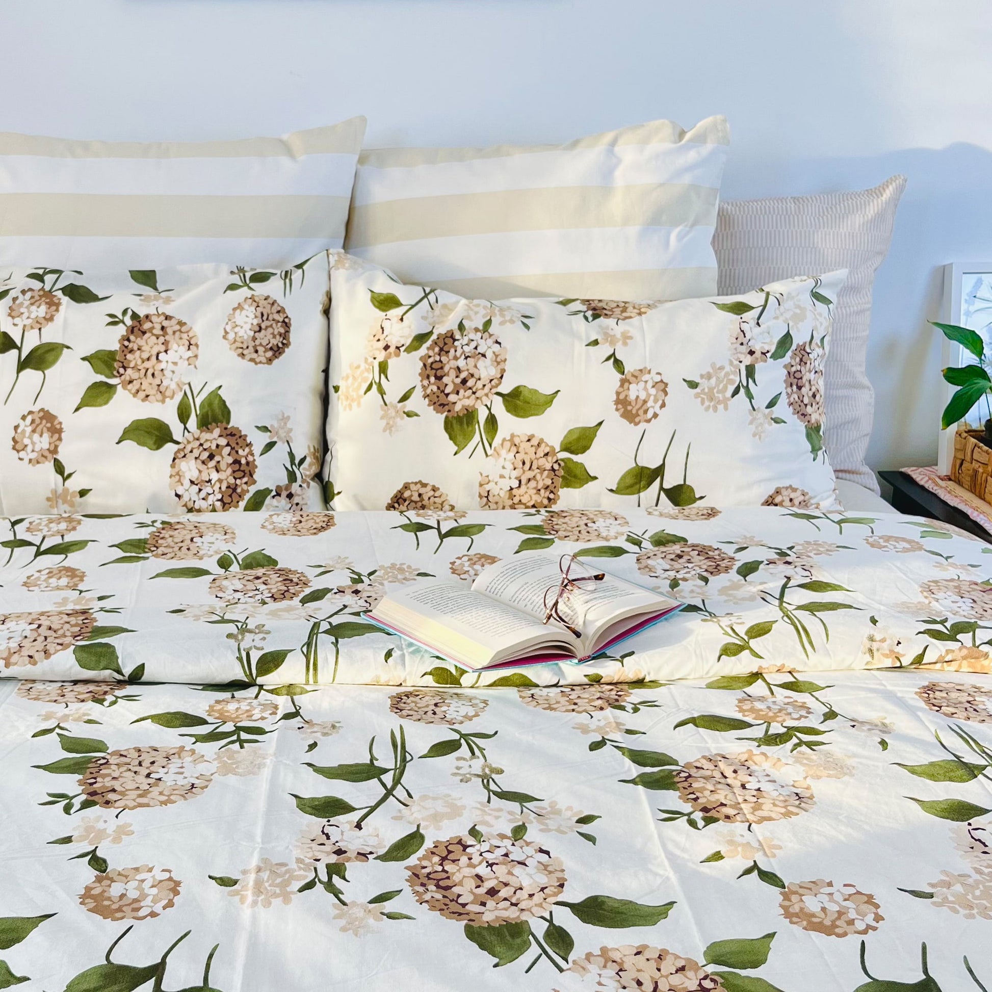 Mogra, a pure cotton masterpiece handcrafted to bring the beauty of lush gardens and nature into your bedroom. The captivating floral design seamlessly blends with a soft white palette, creating a soothing ambiance. Enjoy the long-lasting comfort as the cotton gets softer with each wash, while our prints and colors remain vibrant even after countless cycles. With its clean and highlight look Mogra is a must to every bedding collection.