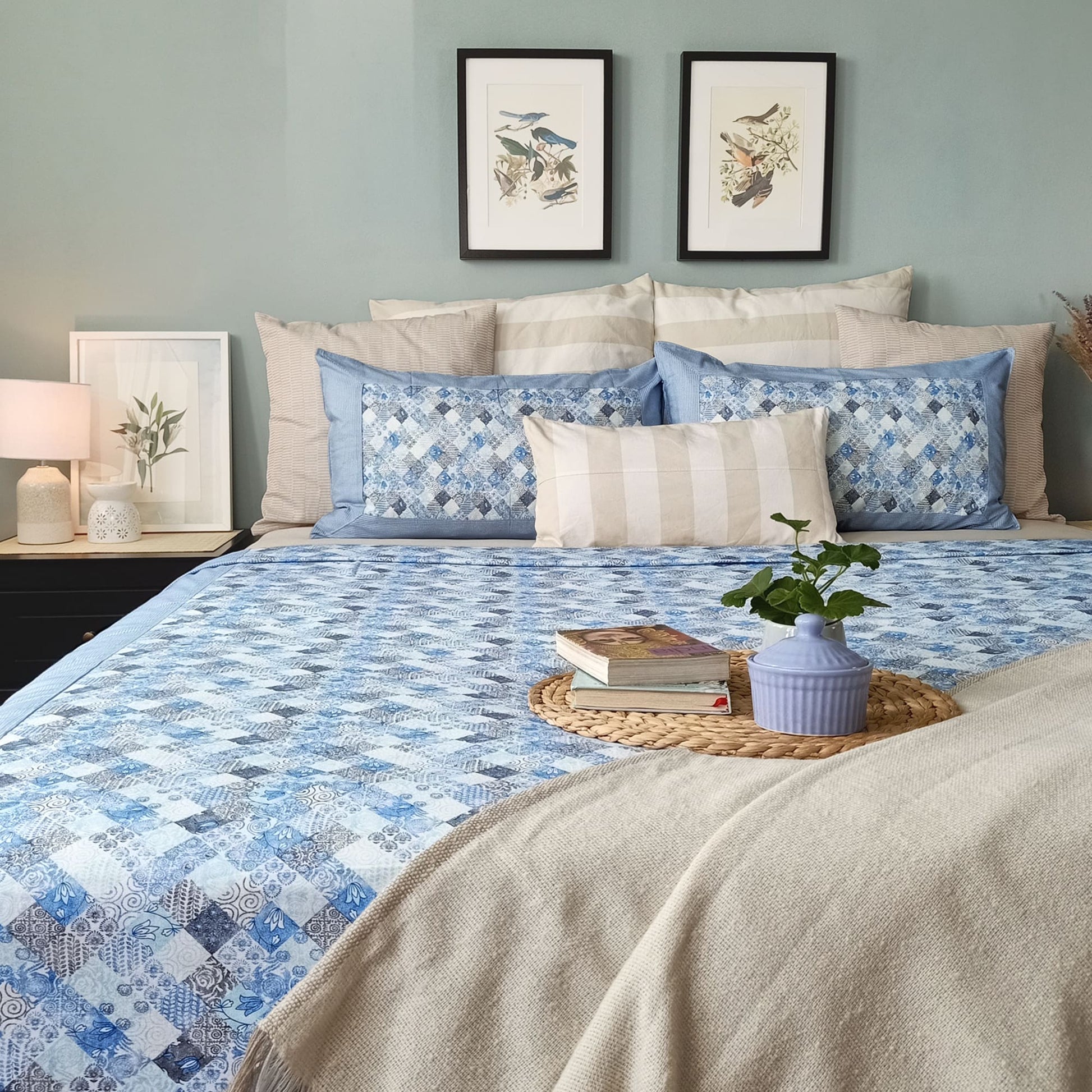 Our flat bedcover set Indie Mosaics is a perfect choice for comfortable sleep throughout the seasons. The running print looks beautiful with matching pillow covers. Mix and match our indie Mosaics with solid cushions of your choice and stylise your bedroom. Our flat bedcovers are designed to be durable and easy to maintain, with their vibrant colors and prints remaining vivid even after multiple washes.
