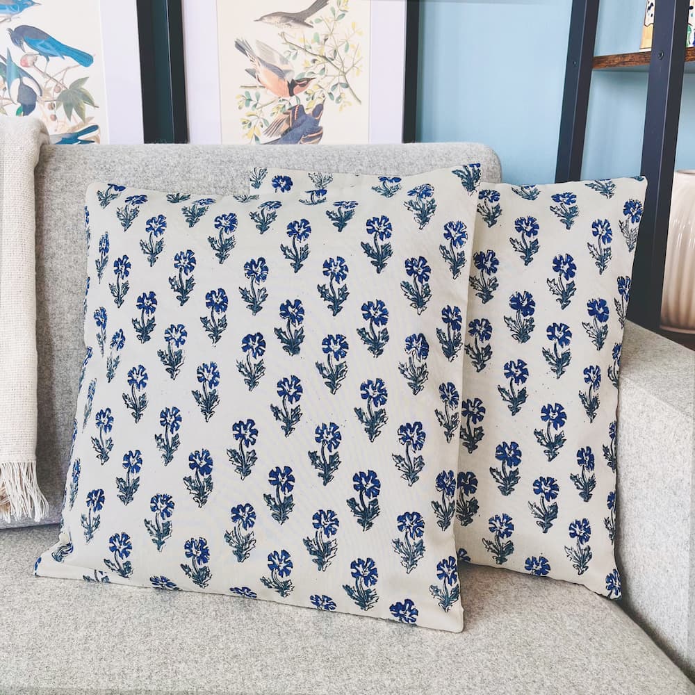 Our Ivory silk cushion cover adorned with classic Indian butti designs, renowned for their ornamental beauty. This cover is hand-block printed by skilled Indian artisans, ensuring each piece is a work of art. The silk fabric adds a luxurious sheen to any space, and its vibrant yet soothing color complements various palettes. Whether it's a treat for yourself or a thoughtful gift for a new homeowner friend, this cushion cover adds a touch of elegance to every home.
